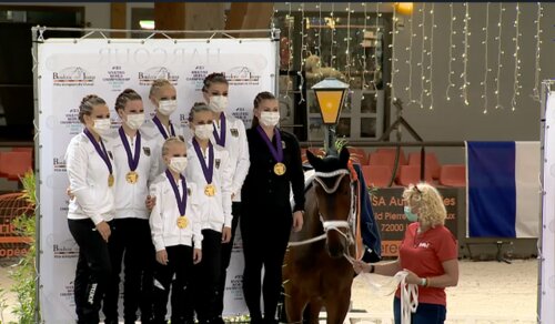 Das Juniorteam Ingelsberg hat es geschaft und ist Junioren-Weltmeister 2021! Das Voltigieren ist zurück im französischen Pferdesportzentrum Boulerie Jump, dem Pole Européen du Cheval in Yvré-l’Évêque. Und dort triumphierten die oberbayerischen Akrobaten.Sarah Liersch, Marlene Le Bris, Stella Alice Pfaffenzeller, ...