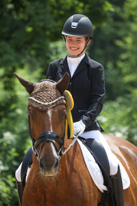 Die Qualifikationsprüfung zum Finale des Nürnberger Burg-Pokal der Junioren gewann heute in Grafing Aiterndorf Tabea Sahra Kern mit ihrem 13-jährigen Wallach Silvano-Gold vor Sabrina Stillinger mit Fisherman's Friend. Bei 30°C zur Mittagszeit behielt Tabea in der Dressurprüfung der Klasse L* auf Trense ...