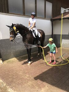 Tropische Temperaturen herrschten heute beim Dressurturnier im niederbayerischen Niederaichbach. Doch konnte die veranstaltende Familie Ritzinger dank der kühlen Arbeitehalle den zwei- und vierbeinigen aktiven beste Bedingungen bieten.In einer S-Dressur, die für sieben- bis neunjährige Pferde ausgeschrieben ...