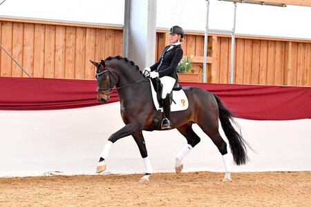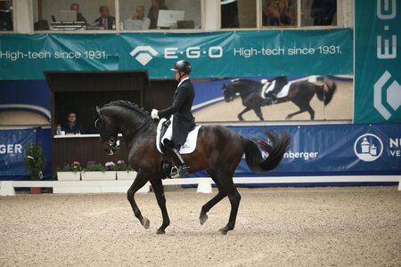 Da lief einfach alles perfekt: Franz Trischberger, der auf dem oberbayerischen Hofgut Allerer als Ausbilder fungiert, hatte heute in der Intermediaire I auf Gut Ising die Nase vorn. Mit dem neunjährigen Hannoveraner Rugby setzte sich der junge Mann mit deutlichem Abstand an die Spitze des 15 Teilnehmer ...