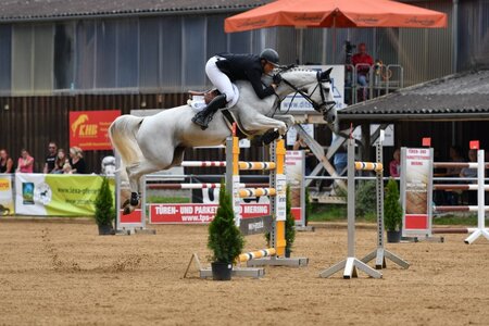 Auf dem Platz des Heimatvereins ist er einfach unschlagbar: Mit einer blitzschnellen Nullrunde hat Christian Brühl im Sattel seiner Schimmelstute Queen Bella den Sieg im S*-Springen mit Siegerrunde nach Hause geholt. Der Reiter des Frankenhofs Sonnefeld nahm der Zweitplatzierten, Stefanie Junker, beim ...