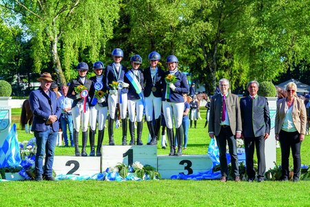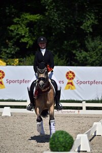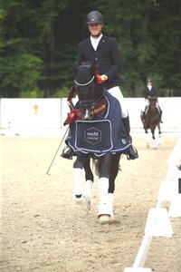 Der Titel bei den sechsjährigen Dressurponys geht nach Bayern! Farbenfrohs Cocktail de Luxe v. Cocktailzauber-Lorenzo (Z.: Artur Nieberle, B.: Jana Reichl) trabte unter ihrer Besitzerin zum Sieg und heimste damit den ersten Titel für die Landeszucht ein. Höhepunkt der Vorstellung war die Galopptour ...