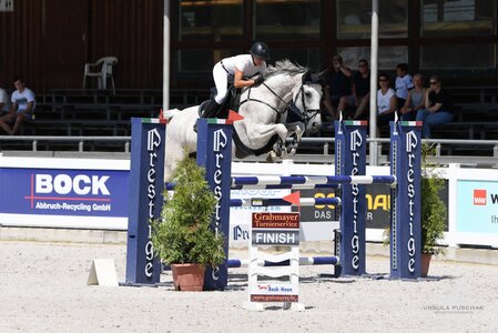 Was war das für ein Gänsehautfinale: Im abschließenden S**-Springen des großen Dressur- und Springturniers lieferten sich Sönke Kohrock und der Hausherr Edwin Schmuck ein wahres Kopf an Kopf Rennen. Schlussendlich setzte sich Sönke Kohrock mit seinen elfjährigen Banjo d`Elle in einer Zeit von 37,90 ...