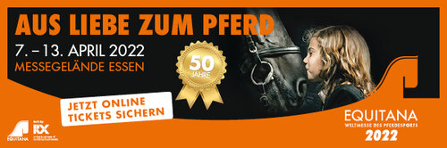 Feiern Sie mit uns das diesjährige Jubiläum der Equitana! Als Bayerns Pferde-Abonnent erhalten Sie für die Veranstaltungstage Montag, Dienstag und Mittwoch 11. bis 13. April 2022 der Equitana vergünstigte Tickets. Das Ticket-Special ist nur über den Online-Verkauf verfügbar. Bestellen Sie sich Ihre ...