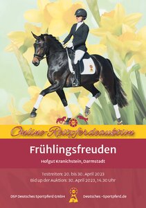 Klasse, Vielfalt und einiges zu entdecken: Das bietet die Kollektion der DSP-Online-Reitpferdeauktion Frühlingsfreuden. 22 Reitpferde hat das DSP-Team für Sie auf Hofgut Kranichstein in Darmstadt aufgestallt. Und am Sonntag, dem 23. April, wird zur Sondervorstellung der Kollektion auf dem ehrwürdigen ...