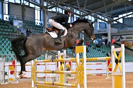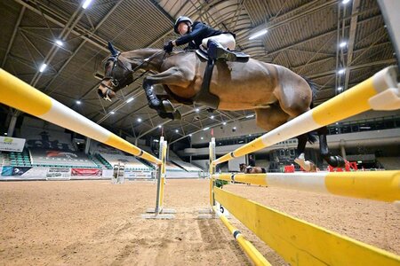 Zu später Stunde klingelte die Startglocke in der Ostbayernhalle für die Starter der Springprüfung der Klasse S*. Insgesamt hatten sich 13 Paare den Parcours über 1,40m zur Aufgabe genommen, der sich gleich zu Beginn als eine nicht ganz einfache Aufgabe erwies. Doch am Ende gelang es den Top-3 zum Start ...