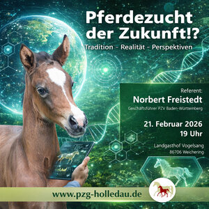 Wie sieht das Reitpferd der Zukunft aus? Darüber diskutieren Dr. Wolf-Dieter Wagner, Uwe Schwanz und Manfred Marschall im Rahmen der Regionalversammlungen. Eingeladen sind Züchter, Reiter, Ausbilder und alle, die sich für die Zukunft von Zucht und Sport interessieren. 20. Februar 2026 | 19:00 Uhr Seligweiler ...