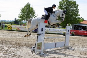 Mit einem, oder eher zwei Paukenschlägen beendet Stefanie Paul das Springfestival in Illertissen und gewinnt sowohl das abschließende Springen der Youngster-Tour, als auch das Finale des Schwaben Masters Cups. In der Jungpferde-Tour hatte sie die Siegerin vom Freitag, ihre achtjährige Hannoveraner-Stute Lordin gesattelt. Die flinke Stute bewies erneut ihre ganze Klasse und kämpfte bis zum letzten Sprung. Über zwei Sekunden Vorsprung hatte das Paar schließlich zum Zweitplatzierten: Ricardo Benzinho Karle Costa und sein siebenjähriger KWPN-Wallach Kirocco holten sich damit ihre erste gemeinsame S-Platzierung. Auch Platz drei ging an den Ausbilder aus Gerstetten, diesmal mit der achtjährigen Janneke, ebenfalls aus niederländischer Zucht. Tobias Rist ritt mit dem selbstgezogenen und selbst ausgebildeten Crümel Sam, achtjähriger Wallach v. Christdorn, auf Platz vier. Rang fünf ging an Stefanie Görlich mit dem achtjährigen Oldenburger Springpferd Cinober vor Elisabeth Meyer und der DSP-gezogenen siebenjährigen Stute Clearfeary. In der vierten und letzten Wertung des Schwaben Masters Cup hatte Stefanie Paul mit ihrem neunjährigen Zangersheide-Hengst Cheeky Charly die Nase vorn. Die Reitmeisterin aus dem Allgäu ritt im Stechen dem Namen ihres Hengstes entsprechend frech. Der Braune machte super mit und hatte noch deutlich Luft nach oben. Platz zwei ging wie auch in der Youngster-Prüfung an Ricardo Benzinho Karle Costa, diesmal mit dem KWPN-Hengst Zef. Trotz enger Wendungen und schnellem Grundgalopp auf den Geraden konnte er die Zeit der Siegerin nicht unterbieten. Die für Polen startende Weronika Minkiewicz wurde im Sattel ihrer 12-jährigen Chacco-Blue-Tochter Chocolate Blue Dritte. Platz vier ging nach Österreich an Jessica Vonach und Valentino, die zwei Abwürfe im Stechen und die schnellste Zeit hatten. Monika Dirr aus Pfaffenhofen wurde mit der 15-jährigen Chicca D'Oro Fünfte, ebenfalls mit zwei Abwürfen im Stechen. (mj)