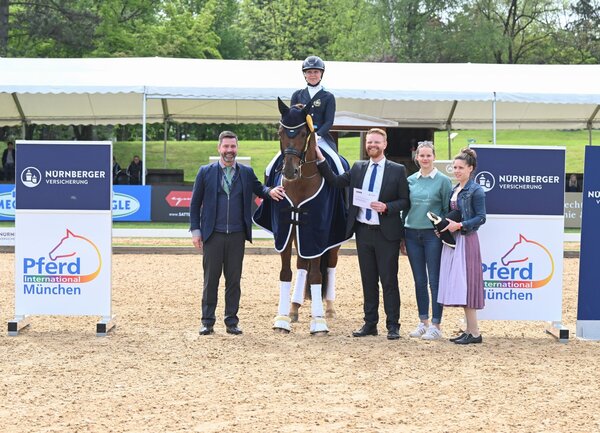 Gleich am Morgen hieß es heute bei Pferd International München für die sieben- bis neunjährigen Nachwuchsdressurpferde antreten, als die Glocke zur Qualifikation für die Wertung im Nürnberger Burg-Pokal läutete. Der Sieg ging an Schwedens Therese Nilshagen auf dem achtjährigen Hannoveraner Hengst La Vie. Laura Strobel aus Osnabrück, die schon in den Vortagen höchst erfolgreich war, platzierte den neunjährigen Westfalen Diamond of Eternity auf Rang zwei. Platz drei ging an Victoria Nielsen (Gut Daxau) im Sattel der neunjährigen DSP-Stute Prinzessin Paula aus der Zucht von Franz Galneder in Taufkirchen. Knapp geschlagen geben mussten sich Jessica von Bredow-Werndl aus Aubenhausen und der neunjährige Tomahawk-Sohn Tamino. Ebenfalls platziert waren Christine Egkinski vom Waldhauser Hof auf dem achtjährigen Oldenburger Viva Waldi und Christian Lanterdinger von der TSG Hofgut Allerer mit Fine Design.1992 rief die Nürnberger Versicherung die Turnierserie Nürnberger Burg-Pokal ins Leben. Eine Dressurserie für sieben- bis neunjährige Pferde, die noch keine Grand Prix-Platzierungen haben dürfen. Über zwölf Stationen können die Reiter, die maximal zwei Pferde in der Serie reiten dürfen, qualifizieren. Das Finale findet traditionell in der Frankfurter Festhalle im Dezember statt. (ms)