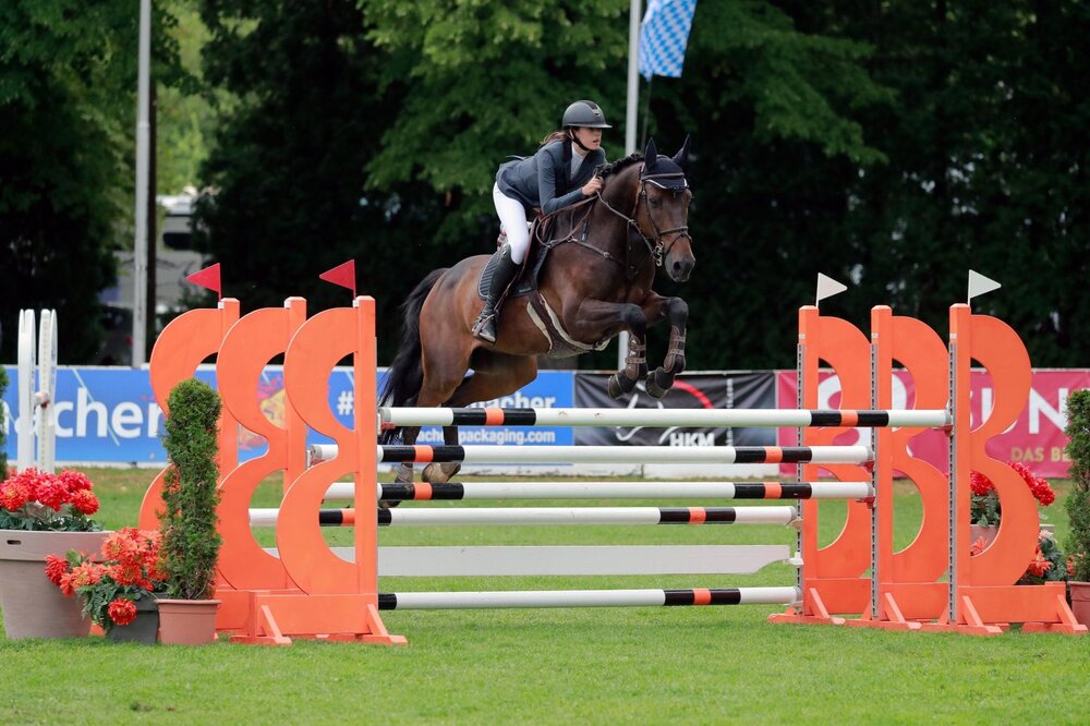 Das Programmheft am zweiten Turniertag in Holzkirchen-Thann war gut gefüllt. Während die Dressurreiter wie auch schon am Vortag im Viereck um die Schleifen kämpften, galoppierten die Springreiter parallel dazu auf der großen Springwiese durch den Parcours. Auch hier war für alle etwas geboten, neben Springpferdeprüfungen, in denen der Springnachwuchs sein Können beweisen konnte, gingen die Routiniers am Nachmittag in einer Springprüfung der Klasse M* an den Start. Der Sieg in dieser Prüfung ging an die junge Springreiterin Philippa Walischewski vom RFV Weilheimer Pferdefreunde, sie zeigte mit ihrem Pferd Jalvaro II die einzige fehlerfreie Runde und verwies die Konkurrenz damit auf die hinteren Plätze. Über den zweiten Platz freute sich Uli Hacker mit Com ci com ca, der dritte und vierte Rang ging an Andreas Gutwald mit seinen Pferden Clinsman und My quick Melloni.