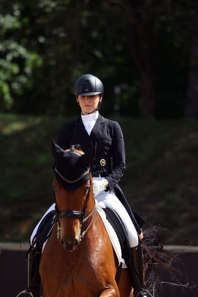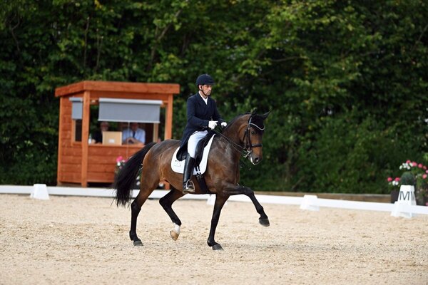 In der heutigen Intermediaire II blieb der Sieg wiederum auf dem Waldhauser Hof. Genauer gesagt ging dieser mit Juliane Nuscheler an eine Schülerin von Uwe Schwanz. Im Sattel ihres 13-jährigen Wallachs Karl Louis sicherte sie sich mit starken 71,1 Prozent den Sieg. Das Erfolgspaar überzeugte mit einer sehr sicheren Runde mit kleinsten Galopppirouetten sowie ausdrucksvollen Verstärkungen und Passagen. Der Drittplatzierte der gestrigen Intermediaire A, Ferdinand Csaki konnte sich heute mit seinem Stone Island noch einmal steigern und freute sich mit 70,3 Prozent über den zweiten Platz. Bis kurz vor Schluss hatten die beiden die Prüfung mit ihrer sicheren Runde und Highlights in Verstärkungen, Trabtraversalen und Serienwechseln angeführt. Auch Svenja Holzmayr mit ihrem 14-jährigen KWPN-Wallach Elmar freute sich mit 69 Prozent über einen Podestplatz. Bettina Meijs mit Freddy Couples (68,9 Prozent) und Nicole Isser mit Pippi Lotta (67,7 Prozent) reihten sich auf den Plätzen vier und fünf ein. Enya Müller mit Fats Domino (67,6 Prozent) und Sylvia Gugler mit Shanti (67,1 Prozent) ritten ebenso in die Platzierung. (msb)