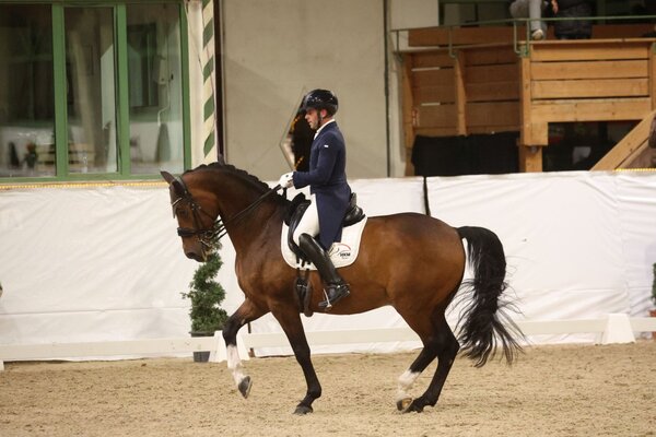 Franz Trischberger und sein DSP James Bond sind einfach echte Kürspezialisten. Nachdem das Erfolgspaar schon im September beim Chiemsee Pferdefestival in der Grand Prix Kür die magische 80-Prozentmarke geknackt hatte, folgte dieses Top-Ergebnis auch auf internationalem Parkett, genauer gesagt in der Grand Prix Kür von Ornago. Beim großen Dressurturnier auf Gut Ising stand nun der nächste Start in einer Grand Prix Kür an und die beiden wurden ihrer Favoritenrolle mehr als gerecht. Passend zum Namen des 13-jährigen Wallachs aus Landeszucht (Z.: Franz-Josef Stöckl) trumpften Franz Trischberger und DSP James Bond zu den Klängen von James Bond auf, spielten ihre Stärken in der Piaff-Passage-Tour sowie den sicheren Serienwechseln lässig aus. Letztere zeigten die beiden nicht nur auf gebogener Linie, sondern ebenso mit Übergängen zwischen Zweier- und Einerwechseln und wieder zurück. Schwieriger geht’s wohl kaum! Auch Dorothee Schneider, die jeden Ritt im Anschluss kommentierte, war voll des Lobes: „Der Name ist Programm – Meines Erachtens ist diese Musik extrem passend natürlich zum Namen des Pferdes, aber auch zum Pferd selbst. Ganz viel Takt und Atmosphäre, super exakt geritten und Pirouetten auf dem Teller gedreht. Hoher Schwierigkeitsgrad, großes Kompliment, tolle Kür!“. Auch Franz Trischberger war nach seinem Ritt gerührt und fügte hinzu: „Ich habe ihn jetzt seit vier Jahren im Stall. Für mich ist er das beste Pferd. Er gibt immer sein Bestes und ist immer motiviert. Ich kann mich einfach immer auf ihn verlassen. Ich bin einfach wahnsinnig glücklich, dass ich ihn reiten darf!“. Das Siegerpaar wurde mit 80,08 Prozent belohnt und verwies Uwe Schwanz mit Rockson (77,63 Prozent) auf den zweiten Platz. „Uwe Schwanz ist ein wirklich nicht mehr wegzudenkender Ausbilder von Dressurpferden. Höhepunkte mit Sicherheit auch heute die Piaff-Passage-Tour. Großes Lob auch von mir für die zum Schwung des Pferdes toll passende Musikauswahl“, beschrieb Dorothee Schneider. Auch seine Kür war mit Schwierigkeiten gespickt, wodurch er auch die auf der ersten Wechsellinie misslungenen Einerwechsel gut ausgleichen konnte. Eine kleine Überraschung gelang Anna-Katharina Gerber. Sie freute sich im Sattel ihres 15-jährigen Wallachs Fit for Fun über Platz drei. Das elegante Paar wurde mit 76,8 Prozent belohnt. Ferdinand Csaki mit Dwayn (73,3 Prozent) und Juliane Nuscheler mit Karl Louis (73,5 Prozent) reihten sich auf den Plätzen vier und fünf ein. Schon das gesamte Wochenende überzeugte das hohe Niveau der Starter und so überzeugte auch die Grand Prix Kür mit tollen Ritten. "Wir sind unheimlich zufrieden und glücklich, dass wir solch tolle und auch namhafte Reiter auf unserem Turnier begrüßen dürfen. Sowohl die Dreisterne-Prüfungen als auch die "kleinen" Touren sind sehr gut besucht", fasste Turnierleiterin Petra Hofmann zusammen. Doch dieser Zuspruch für ihr Turnier kommt nicht von ungefähr: Beste Bedingungen, optimale und liebevolle Organisation führten stets zu Top-Stimmung! (msb)