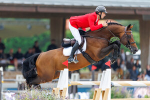 Die Geländepferde-A* startete am Samstag mit 18 Nennungen, das zeigt, dass auch dieses Format sehr gut angenommen wird. Schließlich hatte Stefan Eckel mit der sechsjährigen Oldenburger-Stute Finja die Nase vorn. Der Ausbilder aus dem hessischen Büttelborn pilotierte die Stute zur Wertnote 9,2. Die Fuchsstute galoppierte gleichmäßig und ausbalanciert über die Strecke. Teilweise hatte Eckel etwas Mühe, mit seinen Hilfen durchzukommen. Dadurch litt die Feinabstimmung vor den Sprüngen hin und wieder, woraus in der Folge der Sprungablauf leicht stockte. Doch die Stute zog stets mutig und motiviert zu den Hindernissen. Platz zwei ging nach Sulzthal an Sophia Frank und Monsignore Mistral aus der Zucht von Franz-Josef Stöckl. Der fünfjährige Manchester van't Paradijs-Sohn zeigte sich aufmerksam und gut an den Hilfen stehend. Für seine Runde erhielt er eine 9,0. Auch Julia Stiefele (Bronnweiler) erreichte mit der fünfjährigen KWPN-Stute Ogucci vd Watermolen die Anforderungen der Qualifikation, für sie gab es eine 8,8. Ebenso durfte sich Tashina Lanz (Gut Hollern II) im Sattel des sechsjährigen Canto-Sohnes Cochise freuen. Platz vier mit 8,4.