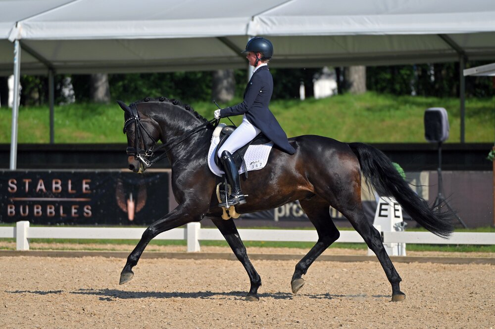 Bereits am gestrigen Abend triumphierte Christine Eglinski (Waldhauser Hof) mit Viva Waldi in einer Intermediaire II. Nach einer beeindruckenden Vorstellung erhielt sie die goldene Schleife und konnte Emily Fisch von der TSG Hofgut Allerer und Apanage auf Rang zwei verweisen. Dritte auf dem Podest wurden Uwe Schwanz und die zehnjährige DSP-Stute Zarentochter.