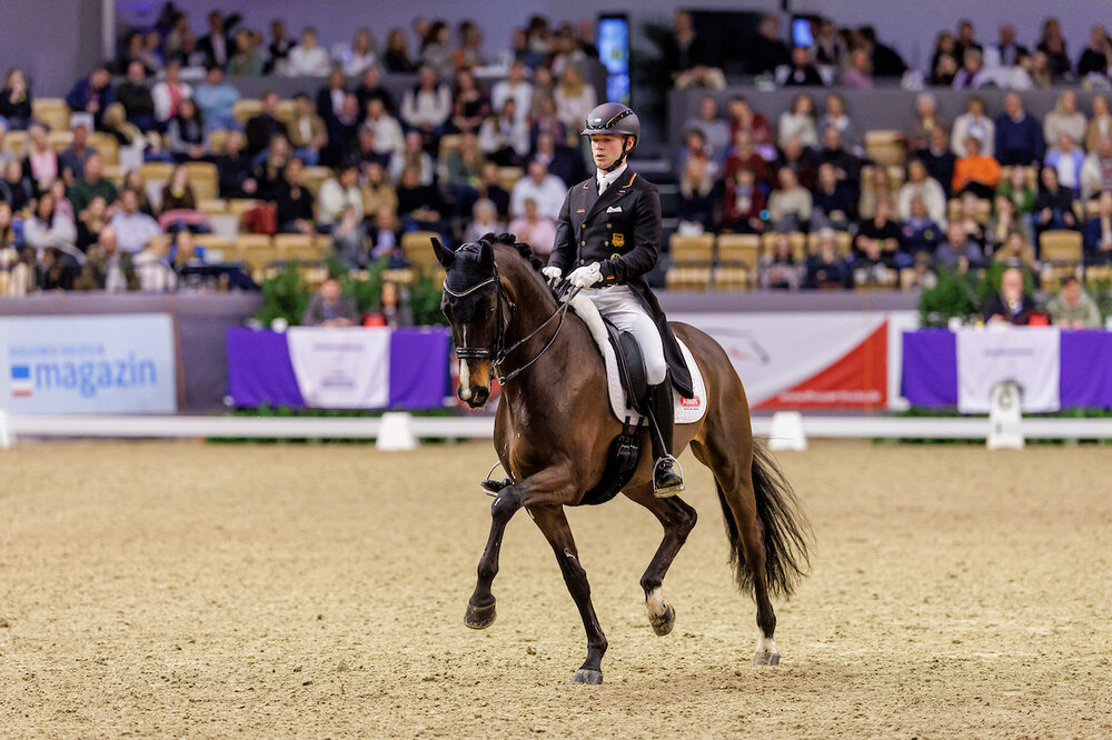 Schon im gestrigen Grand Prix ritten Raphael Netz und Great Escape Camelot um den Sieg mit. Die beiden punkteten vor allem mit einer fließenden Trabtour, gut ausgehaltenen Passagen sowie aktiv abfußenden Piaffen bei stets gutem Seitenbild. Im Galopp kamen gut zentrierte Galopppirouetten hinzu. Demgegenüber verlor das Erfolgspaar mit einem Missverständnis in der Zick-Zack Traversale und in den Zweierwechseln wertvolle Punkte. Alles in allem reihten sich Raphael Netz und der 13-jährige Wallach mit 71,8 Prozent auf Rang zwei ein. An die Spitze tanzte sich im wahrsten Sinne des Wortes eine der „Entdeckungen“ der Olympischen Spiele in Paris, die erst achtjährige Stute Maxima Bella unter dem Sattel von Sandra Sysojeva. Die Stute brillierte auch im Grand Prix mit einer ihrer absoluten Stärken, den enorm ausdrucksvollen und gleichmäßigen Piaffen und Passagen. Aber auch im Galopp zeigte sich kein großer technischer Patzer, wodurch sie sich mit 73,7 Prozent die goldene Schleife schnappten. Fabienne Müller-Lütkemeier und Valesco komplettierten mit 71,2 Prozent das Podest. An dieser Reihenfolge auf dem Podest ließ sich auch am Finaltag, in der Weltcup-Kür, nichts „rütteln“. Sandra Sysojeva und Maxima Bella schnappten sich mit 79 Prozent den Sieg vor Raphael Netz mit Great Escape Camelot (76,4 Prozent) und Fabienne Müller-Lütkemeier mit Valesco (76,3 Prozent). Neben weit kreuzenden Trabtraversalen, guten Piaffen und Passagen sowie wiederum gelungenen Galopppirouetten gelangen auch heute die Zweierwechsel des bayerischen Paars nichts ganz ideal. Alles in allem war das ein guter Weltcup-Auftakt für Raphael Netz und Great Escape Camelot!