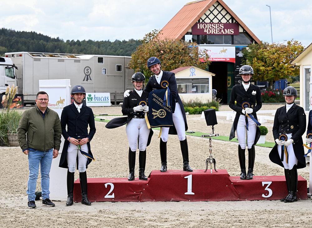 Allen voran sicherte sich Lisa Müller eine weitere internationale Top-Platzierung. Im Sattel von Gut Wettlkam’s Zonik Hit OLD punktete sie sich zu 68,7 Prozent und zu Platz drei. Dabei zählte die energisch abfußenden Piaff-Passage-Touren und die schnurgeraden Einerwechsel zu den Highlights der Prüfung. Demgegenüber gingen in der ersten Galopppirouetten durch einen Verlust des Durchsprungs sowie in einer Trabverstärkung wertvolle Punkte verloren. Doch den Namen Gut Wettlkam fand man heute auch ein weiteres Mal auf dem Podest. Denn Lisa Müller’s Trainierin Isabell Werth nahm kurzum Platz im Sattel einer der Erfolgspferde von Lisa Müller. Die Rede ist von Gut Wettlkam’s D’Avie.