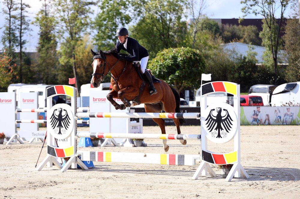 Mit einer S*-Springprüfung über 140cm ist das große Herbstturnier der RSG Frankenhof-Sonnefeld zu Ende gegangen. Am Ende hieß der Sieger Hans-Peter Konle. Der Reiter aus dem fränkischen Küps hatte den erfahrenen Gambrinus gesattelt und lotste den 13-jährigen KWPN-Wallach am schnellsten fehlerfrei ins Ziel. Die silberne Schleife holte sich Jacob Feyler von der RFG Mitwitz mit Caligor. Er verwies den frisch gebackenen Champion der Berufsreiter im Springsattel, Jannes Schultewolte vom RFV Sulzbach-Rosenberg mit Quiberole auf Rang drei.