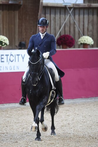 Franz Trischberger zählt bei den Dressurtagen im baden-württembergischen Reutlingen schon als Stammgast. Doch er reitet dort Jahr um Jahr nicht einfach irgendwie mit. Nein, er entpuppt sich auch immer wieder als echter Erfolgsreiter des Turniers. So war auch in diesem Jahr. Gleich zum Turnierauftakt schnappte er sich in der Intermediaire II im Sattel von Sanrico einen überlegenen Sieg. Eigentlich kennt man den sympathischen Rappen unter dem Sattel seiner Besitzerin Jutta Borgmann-Reuter. Gemeinsam dominierten sie in den vergangenen Monaten die Dreisterne-Amateur-Tour in Süddeutschland. Doch auch Franz Trischberger hatte in der Vergangenheit immer wieder Platz im Sattel des 15-jährigen Wallachs genommen. In Reutlingen spulten die beiden das Dreisterne-Programm in völliger Leichtigkeit und mit höchster Harmonie ab. Auf eine gleichmäßige Trabtour mit aktiv abfußenden Passagen und schon gut auf der Stelle platzierten Piaffen folgten kleinste Galopppirouetten (wofür es auch die Note 9 gab) sowie schnurgerade Einer- und Zweierwechsel. Einzig die Übergänge aus den Piaffen könnten sich teilweise noch prompter zeigen. Am Ende führten die beiden völlig verdient die Ehrenrunde an. Katrin Burger und ihr sympathischer Lusitanohengst Mico folgten auf Rang zwei (69,9 Prozent). Franz Trischberger hatte am Wochenende noch ein zweites Eisen im Feuer und so komplettierte er mit Tamburin Man das Podest (69,6 Prozent). In der zweiten Dreisterne-Prüfung, einem Kurz Grand Prix, gelang Franz Trischberger dann der große Triumph und so freute er sich über einen tollen Doppelsieg. Die beiden punkteten wiederum in den toll kreuzenden Trabtraversalen, aber auch in der Piaff-Passage-Tour, wobei die Piaff-Passage-Übergänge sogar noch präziser gelangen. Auch die Galopptour zeigte sich technisch sehr sicher, wodurch sich die beiden mit 72,3 Prozent an die Spitze setzten. Auf Platz zwei folgte Franz Trischberger erneut. Dieses Mal mit Tamburin Man, mit welchem er sich zu starken 71,3 Prozent punktete. Reutlingen diente für Trischberger und Rappwallach nun als Vorbereitung für das Stars von Morgen Finale auf Gut Ising. Auf den Plätzen drei und vier folgten Frederik Leon Steisslinger mit Favory (69,4 Prozent) und Katrin Burger mit ihrem Mico (68,3 Prozent). Auch in den weiteren Prüfungen mischte Bayern erfolgreich mit. So sicherte sich Paulina Antonia Welcker mit Zenturion in beiden S-Dressuren für Amateure vordere Platzierungen und das mit Prozenten nahe der magischen 70-Prozentmarke. Franz Trischberger platzierte sich mit Fibonacca in der Jungpferde-Tour.