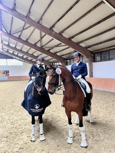 Dieses Paar hat es einfach verdient. Die Rede ist von Victoria Nielsen und ihrer sympathischen Prinzessin Paula. Schon über das ganze Jahr war für die beiden das Finalticket zum Greifen nahe. Doch für den Sieg und damit verbunden das heißbegehrte Finalticket sollte es schlussendlich bis jetzt einfach nicht reichen. In Darmstadt war dem nicht so. Ja, das Erfolgsduo dominierte sowohl die Einlaufprüfung als auch die Finalqualifikation. In der heutigen Finalqualifikation lieferten die beiden eine wahre Traumrunde, die mit bärenstarken 75,4 Prozent belohnt wurde. Die DSP-Stute aus der Zucht von Franz Galneder brillierte gleich zum Auftakt der Prüfung mit einer sehr dynamischen Trabtour, wobei die toll kreuzenden Trabtraversalen und die ausdrucksvollen Trabverstärkungen mit aktiv abfußenden Hinterbein hervorzuheben sind. Auch im Schritt und Galopp ließen Nielsen und ihre „Prinzessin“ keine Punkte liegen und überzeugten unter anderem mit kleinsten Galopppirouetten und fehlerfreien Serienwechseln. Das war ein wahrlich verdienter und wie gesagt ausstehender Sieg! Doch die beiden sind nicht das einzige bayerische Paar, welchem man im Dezember am Finalwochenende im Rahmen des Frankfurter Festhallen Reitturniers die Daumen drücken sollte. Auch Franz Trischberger und seine bewegungsstarke Henriettenhof’s Kinshasa wird man im Finale wiedersehen. Denn der heutige zweite Platz war kein Grund zur Enttäuschung. Nein, vielmehr schnappen sich die beiden nun mit den heutigen 74,7 Prozent über die Rangliste der besten Zweitplatzierten ein Finalticket. Besser geht’s aus bayerischer Sicht wohl kaum! Auch Trischberger und die achtjährige Bordeaux Tochter überzeugten mit einer Runde wie aus einem Guss, wobei tolle Dynamik im Trab, die Galopppirouetten mit hoher Lastaufnahme und die lockeren, toll ins Bergauf gesprungenen Serienwechsel hervorzuheben sind. Hut ab, vor diesen tollen Leistungen von Victoria Nielsen und Franz Trischberger!