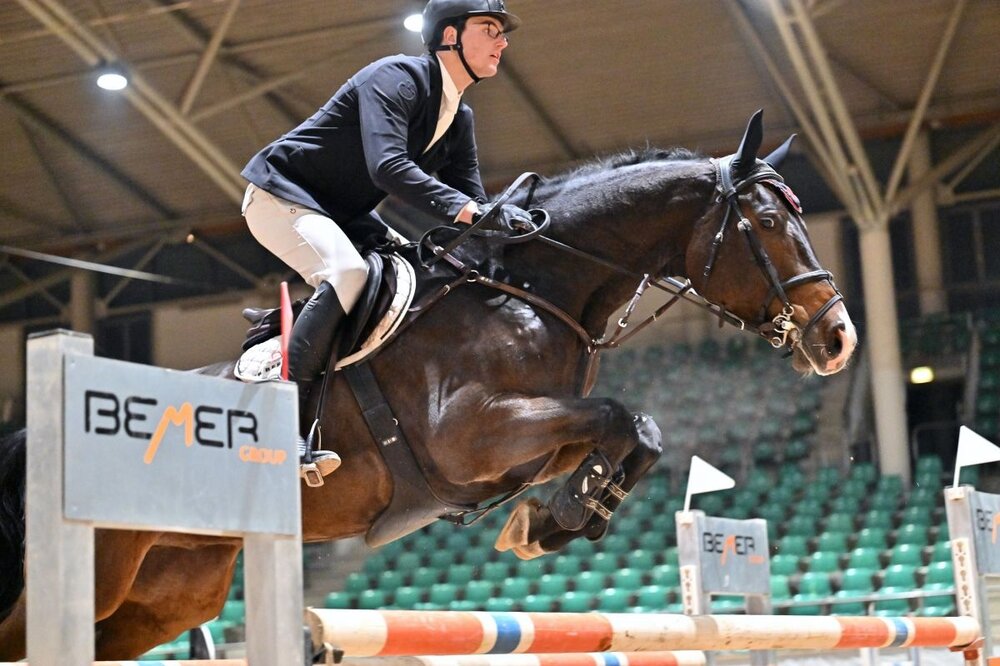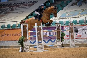 Gestern gehörte die goldene Schleife dann aber ihm: In einer Springprüfung über 1,40 Meter mit Stechen schloss Jannes Schultewolter die erste Runde fehlerfrei mit 84,16 Sekunden ab und war damit noch nicht ganz vorne mit dabei. Richtig stark wurde er dann im Stechen. Auch hier gab es keine Abwürfe und eine sehr gute Zeit von 30,52 Sekunden. Damit lag er vor Selina Höger, die mit 31,38 Sekunden den zweiten Platz belegte und konnte sich somit über den Sieg freuen.