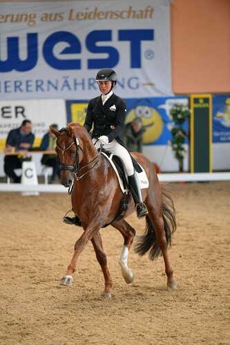 Gleich zum Auftakt knackte Lisa Müller mit ihrem ganggewaltigen Gut Wettlkam’s Mondrian im Grand Prix der CDI3*-Tour die magische 70-Prozentmarke und reihte sich mit glatt 70 Prozent auf Rang vier ein. Dabei punkteten die beiden vor allem in den Piaff-Passage-Touren sowie in den Galopppirouetten. Teuer wurde es in den Zweierwechseln, die an diesem Tag noch nicht ganz fehlerfrei gelangen. Schon in dieser Prüfung nahm Semmieke Rothenberger mit Farrington die Spitzenposition ein (73,8 Prozent). Die 3*-Tour teilte sich genauso wie die 4*-Tour am Finaltag in eine Kür und einen Grand Prix Special auf. Bei letzterem feierte Lisa Müller im Sattel von Gut Wettlkam’s Zonik Hit OLD, der sich im Grand Prix noch etwas übermotiviert präsentiert hatte, einen Podestplatz. So sicherte sie sich mit 68,8 Prozent Rang drei hinter Alejandro Asencio Mendez mit Gaviao dos Cedros (70,8 Prozent) und Charlotte Fry mit Nespresso (69,1 Prozent). In der 4*-Tour schloss Lisa Müller mit Gut Wettlkam’s D’Avie FRH das Wochenende erfolgreich ab. Im Grand Prix Special wurde es für Müller zum Abschluss Rang vier. Mit 69,2 Prozent wurden die beiden zweibestes deutsches Paar (69,2 Prozent). Der Sieg ging an Katharina Hemmer mit Denoix (72 Prozent). Fehler in den Einerwechseln hatten Lisa Müller mit dem 13-jährigen Hengst wertvolle Punkte gekostet.