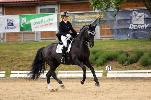 Für die Dressurreiterin Sophia Scheld hätte der Turniertag in Brünst vermutlich nicht besser laufen können. Beflüget vom Sieg in der M*-Dressur zuvor, ritt sie direkt als erste Starterin der S*-Dressur mit ihrer Stute Dark Velvety in die Bahn. Die 15-jährige Don Henrico-Weltmeyer-Tochter zeigte sich ansprechend im Dressurviereck und mit Sophie Scheld im Sattel wusste das Paar direkt zu überzeugen. Besonders in den Schritt-Verstärkungen sammelten sie wertvolle Punkte und auch die schwierigen Lektionen, wie die Galopp-Pirouetten, konnten gelungen präsentiert werden. Die durchweg gute Vorstellung ohne große Fehler wurde mit in Summe 71,82 Prozent belohnt. Von den folgenden 22 Reiter-Pferd-Paaren gelang es keinem dieses Ergebnis in der Prüfung noch zu toppen. Nah ran kam jedoch Carolin Hergenröder mit Sunny Day SW. Hergenröder konnte sich bereits in der Dressurpferdeprüfung der Klasse M am Vormittag über einen Sieg freuen und durfte nun noch eine silberne Schleife aus der S*-Dressur von diesem Turnier mit nach Hause nehmen. Sunny Day und sie sicherten sich nämlich mit 71,34 Prozent den zweiten Platz. Auf dem dritten Platz konnte Sophia Scheld sich erneut einrangieren mit ihrem zweiten Pferd für diese Prüfung Donna Noble. Die DSP-Stute trabte zu 69,40 Prozent. Auf dem vierten Rang folgte Sandra Schwalm mit Le Roc (68,21 Prozent) vor Sofie Stollberger mit Forever Yours (66,90 Prozent).