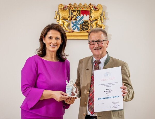 Das Staatsministerium für Ernährung, Landwirtschaft, Forsten und Tourismus hat nun Ochs für seine „langjährigen und außergewöhnlichen Verdienste um die Pferdezucht in Bayern“ mit dem Bayerischen Löwen ausgezeichnet, einem Preis, den Michaela Kanibers Ressort verleiht.