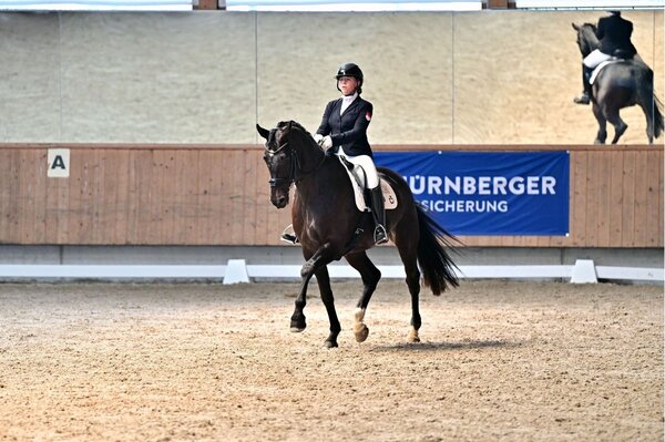 Neben den „allgemeinen“ Sichtungen starteten in Illertissen auch zwei Nachwuchsserien in eine neue Saison, der Nürnberger Burg-Pokal der Dressurjunioren und die U15-Nachwuchsförderung präsentiert von der Horst Rohde Stiftung. Beide Serien verfügten über nicht ganz breite Starterfelder, was deren Relevanz aber nicht schmälern sollte oder wie es Jugendleiterin Michaela Beer auf den Punkt brachte: „Diese Serien sind sehr wichtig. Wir hoffen, dass wir darüber neue Talente entdecken und fördern können. Zudem hoffe ich, dass über die Saison noch weitere Talente in die Serien einsteigen werden“. Die Qualifikation für die U15-Nachwuchsförderung wurde von Emilia Wolf angeführt. Die junge Dame spielte im Sattel ihres Borcelli ihre ganze Routine aus und dominierte in Illertissen alle Prüfungen. In der Qualifikationsprüfung punktete sie sich zu starken 76,6 Prozent, wobei sie besonders mit ihrem gestreckten und gut ausbalancierten Sitz sowie ihrer gefühlvollen und mit Übersicht geprägten Einwirkung zu überzeugen wusste. Dementsprechend standen in der Note für Sitz und Einwirkung 83,2 Prozent. Auch in dieser Note wusste Felix Haußmann besonders zu überzeugen (82,2 Prozent). Er reihte sich mit seine Bibbilotta auf Rang zwei ein (75,2 Prozent). Katharina Kraft mit Finess Royal (71,7 Prozent) und Amelie Plechschmidt mit San Mirage (70,5 Prozent) folgten auf den weiteren Plätzen. Im Nürnberger Burg-Pokal der Dressurjunioren zeigte sich etwas größeres Starterfeld, was aber auch daran liegen mag, dass sowohl Pferde als auch Ponys startberechtigt sind. Die L*-Trensen-Prüfung führte Victoria Vorreiter mit ihrem Ponywallach Snowflake Narducci und einer souveränen Runde an (8,2). Auf dem zweiten Platz folgte ein „neues“ Paar, das sich aber schon ziemlich gut versteht. Die Rede ist von Sophia Letizia Perez Batista und ihrem Hancock (7,8). Bei diesem Duo ist gut denkbar, dass sie in den nächsten Monaten in die FEI-Pony-Szene gut reinwachsen werden. Felix Haußmann triumphierte mit Bibbilotta erneut und sicherte sich mit einer Wertnote von 7,6 Platz drei.