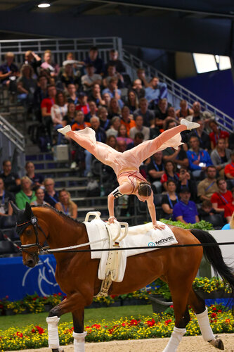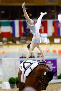 Bei den Voltigierern im Pas de Deux hatte in den beiden Kür Wertung ein Team aus der Schweiz die Nase vorn. Sowohl gestern als auch heute konnten Syra Schmid und Zoe Maruccio mit ihrem Pferd Latino V. Forst CH und Michael Heuer an der Longe gewinnen. Mit den beiden Siegen hatten sie auch den ersten Platz in der Gesamtwertung sicher. Auf Platz zwei folgte ein Kölner Duo bestehend aus Jella Hamann und Arne Heers. Den dritten Platz sicherten sich Diana Harwardt und Peter Künne (Berlin-Brandenburg). Bei den Gruppen konnten gleich zwei Teams aus Nordrhein-Westfalen dominieren. Den Sieg sicherte sich das Team Norka des VV Köln-Dünnwald nach Platz eins in Pflicht und Kür. Mit zwei Platzierungen auf dem Silber Rang hatte das Team St. Hubertus Herne RFZV den zweiten Platz in der Gesamtwertung sicher vor dem schwedischen Team SVEA. Noch einmal Gold gab es für die Mannschaft Germany 1 im Nationenpreis, wofür Alina Roß, Jannik Heiland und das Team Norka des VV Köln-Dünnwald die gewinnbringenden Punkte sammelten.