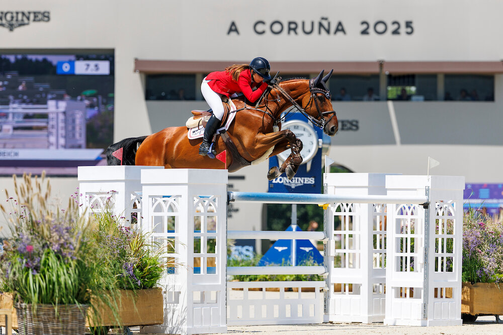 Ärgerlich war es auch für Alessandra Reich. Die international für Österreich startende junge Amazone präsentierte sich bei ihrer zweiten EM wieder einmal in stilistischer Perfektion. Doch ein Fehler am ersten Tag, sollte sie und ihren elfjährigen Belgier Oeli R etwas aus dem Konzept bringen. Im gestrigen Springen verzichtete sie dann nach einigen Sprüngen und einem Missverständnis an der Dreifachen Kombination, die vielen zum Verhängnis wurde, auf die Beendigung des Parcours. „Ich hatte schon auf dem Abreiteplatz nicht so ein gutes Gefühl. Ich musste ihn sehr viel unterstützen. Ich hatte im Parcours das Gefühl er wird eher kleiner als größer - das ist in so einem Parcours tödlich.“ Mit ihrem österreichischen Team, zu dem auch der in Bayern beheimatete Max Kühner zählt, verpasst nur knapp das Teamfinale. Für Kühner und seinen EIC Cooley Jump the Q jedoch, geht es in der Einzelwertung heute weiter.