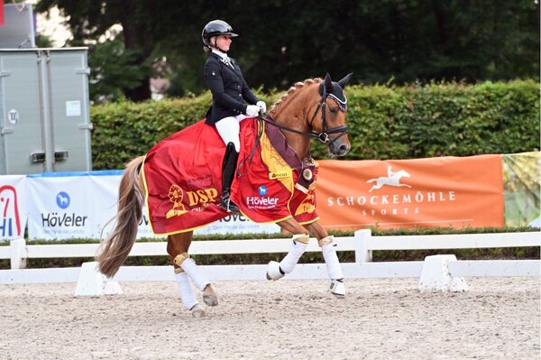 Doch dem war nicht genug für Michele Schulmerig: Sie stellte auch bei den vierjährigen Reitponys den DSP-Champion. Genauer gesagt begeisterte der selbstgezogene DSP Goldschatz (v. Genesis B-Dimension AT, Z.: Heike Schulmerig, B.: Dr. Anja Koban). Der bildhübsche Ponywallach macht nicht nur in puncto Rittigkeit seinem Namen aller Ehre. Nein, er ist trotz seines jungen Alters auch wahrlich kein Unbekannter. Denn beim letztjährigen Bundeschampionat tanzte er sich in die Herzen aller Zuschauer und Richter und avancierte zum Bundeschampion der dreijährigen Reitponys. Nun ein halbes Jahr später knüpft er an seine Erfolge an. „Er ist einfach so gelassen, so locker, so brav“, schwärmte Michele Schulmerig. Das verdeutlichte sich vor allem in der Rittigkeit. Total ausbalanciert, tolles Seitenbild und optimale Losgelassenheit – das führte in der Note für die Rittigkeit zur glatten 9. Doch auch die Noten für die Grundgangarten mussten sich nicht verstecken (Trab: 8,5, Galopp: 8,0, Schritt: 7,5) mussten sich nicht verstecken. Die Note für das Exterieur von 8,5 komplettierten die Endnote von 8,3. Auch die Zweitplatzierten, Laura Patricia Muncz mit der Ponystute Gründleinshofs Diamond Heart (v. Diamond Showtime-Gründleinshofs San Royal, Z.: Cordula Kraus) begeisterten und knackten die 8er-Marke (8,1). Auch die Ponystute überzeugte mit hoher Rittigkeit (8,5) und qualitativ hochwertigen Grundgangarten. Annkatrin Anselstetter mit Failshofer Girl on Fire (v. D-Gold AT-Dreamcatcher, ZG Hümmer und Bogensperger) sowie Giulia Gasztecki mit Georgia (v. Genesis B-Dreidimensional I AT, Z.: Wolfgang Sautter) komplettierten das Podest.