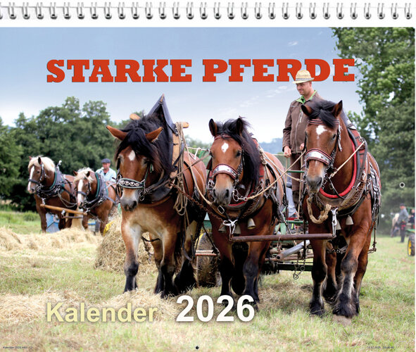Mit den schönsten aktuellen Fotos vom modernen Zugtiereinsatz und aus der Kaltblutzucht ist der STARKE PFERDE-Kalender 2026 eine Bereicherung für jedes Büro und jede Wohnung.
