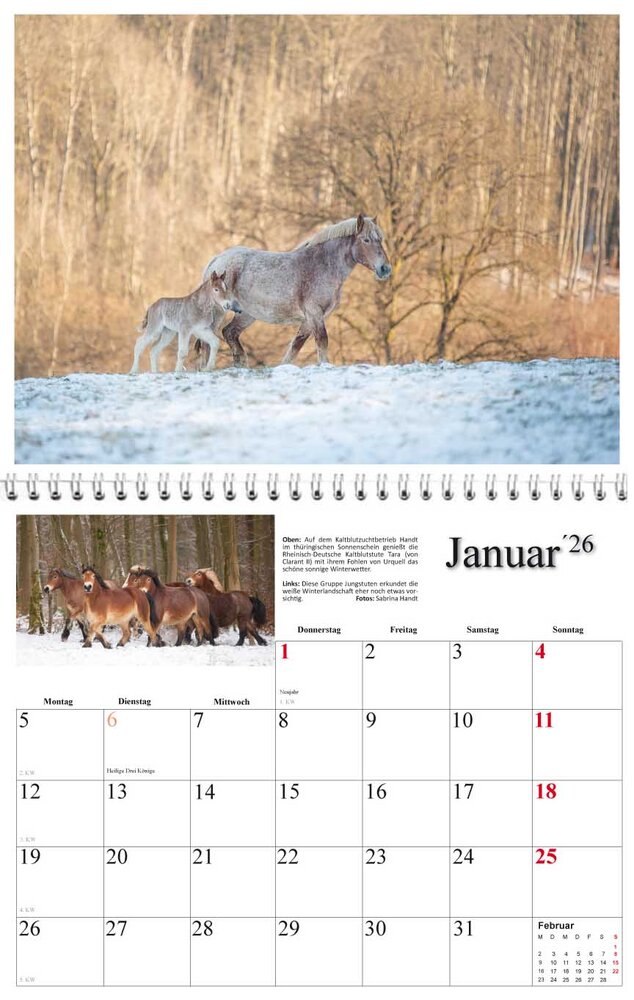Das Arbeitspartner Pferd begleitet in diesem Kalender mit seinen jahreszeitlich abgestimmten Motiven alle Freunde starker Pferde durch das Jahr 2026.