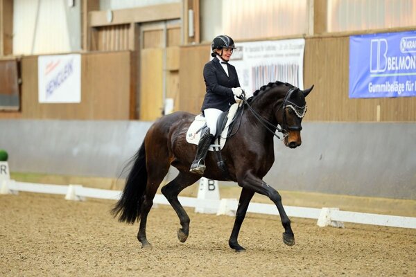Andrea Dlugos ist seit Jahren für die Ausbildung von jungen Pferden bis in die schwere Klasse bekannt. Doch bei der reinen Ausbildung bleibt es nicht. Die Baden-Württembergerin formt viele ihrer Pferde zu echten Seriensiegern. Ein Beispiel hierfür ist aktuell die nun achtjährige Fürstenball-Tochter Fine Lady. Sie tanzte sich in Großlangheim zum nächsten S*-Sieg. Dabei befand sich Andrea Dlugos mit der sympathischen Stute regelrecht in einer eigenen Liga und so durften sich die beiden am Ende mit 71,2 Prozent und einer Runde mit Highlights in den Verstärkungen, Traversalen und Galopppirouetten verdient über den Sieg freuen. Doch auch auf Rang zwei folgte Andrea Dlugos, erneut mit einem selbst ausgebildeten Pferd. Die Rede ist vom 14-jährigen Württemberger Royal Faristo (Z. Anton Herre), der ebenso die magische 70-Prozentmarke knackte und sich mit 70,2 Prozent hinter seiner Stallkollegin einreihte. Auf Rang drei folgte Katharina Krüss-Stühler mit Badena (68,5 Prozent). Karina Lepsinger mit Grandessa (68,4 Prozent) und Nadine Feser mit Grandessa (68,4 Prozent) reihten sich punktgleich auf Platz vier ein.